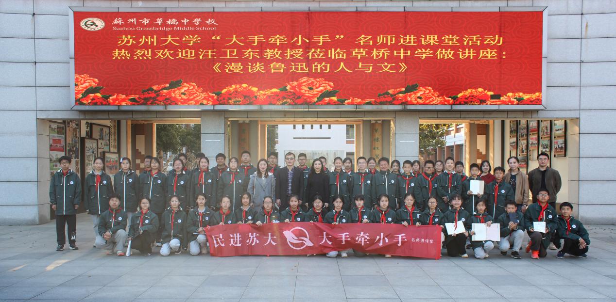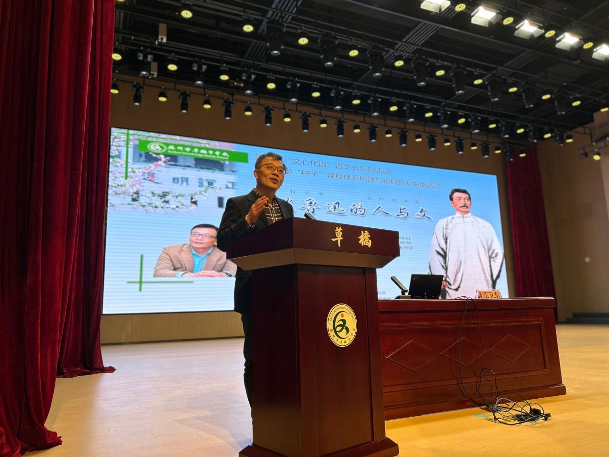 为深入贯彻中共二十届三中全会精神,助力实施全民阅读促进战略,3月21日下午,民进苏大“大手牵小手 名师进课堂”第五站活动走进苏州市草桥中学“正谊大讲堂”,为学校语文节活动拉开序幕。民进会员、苏州大学二级教授、中国鲁迅研究会副会长汪卫东以“漫谈鲁迅的人与文”为主题,为师生们带来了一场精彩的学术盛宴。