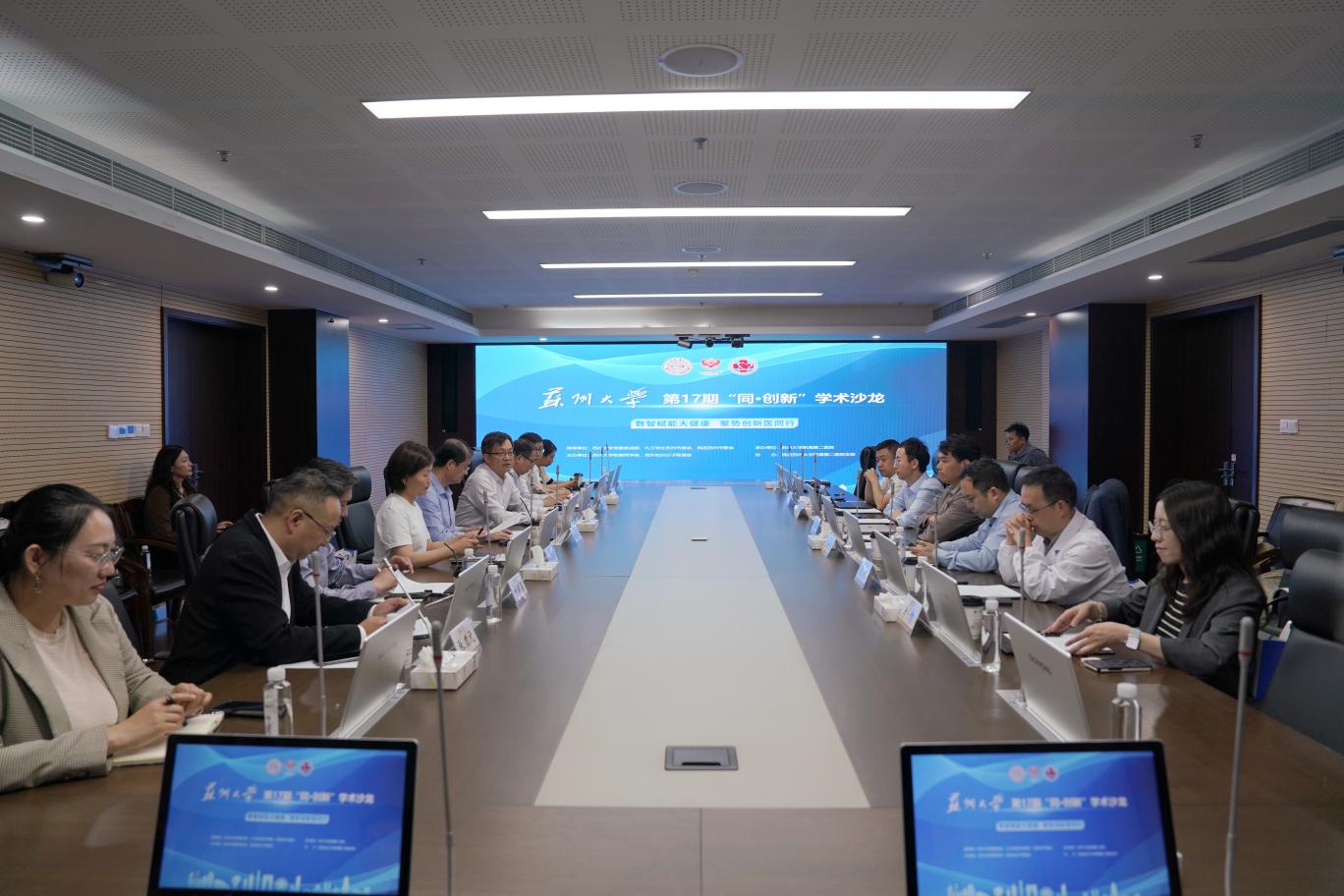 为深入学习领会习近平总书记关于发展新质生产力的重要讲话精神,贯彻落实习近平总书记在全国两会期间参加江苏省代表团审议时的重要讲话精神,进一步推动学科交叉融合,提升创新能力,4月29日下午,我校以“数智赋能大健康 聚势创新医同行”为主题,在苏州大学附属第二医院举办了第17期“同•创新”学术沙龙活动。