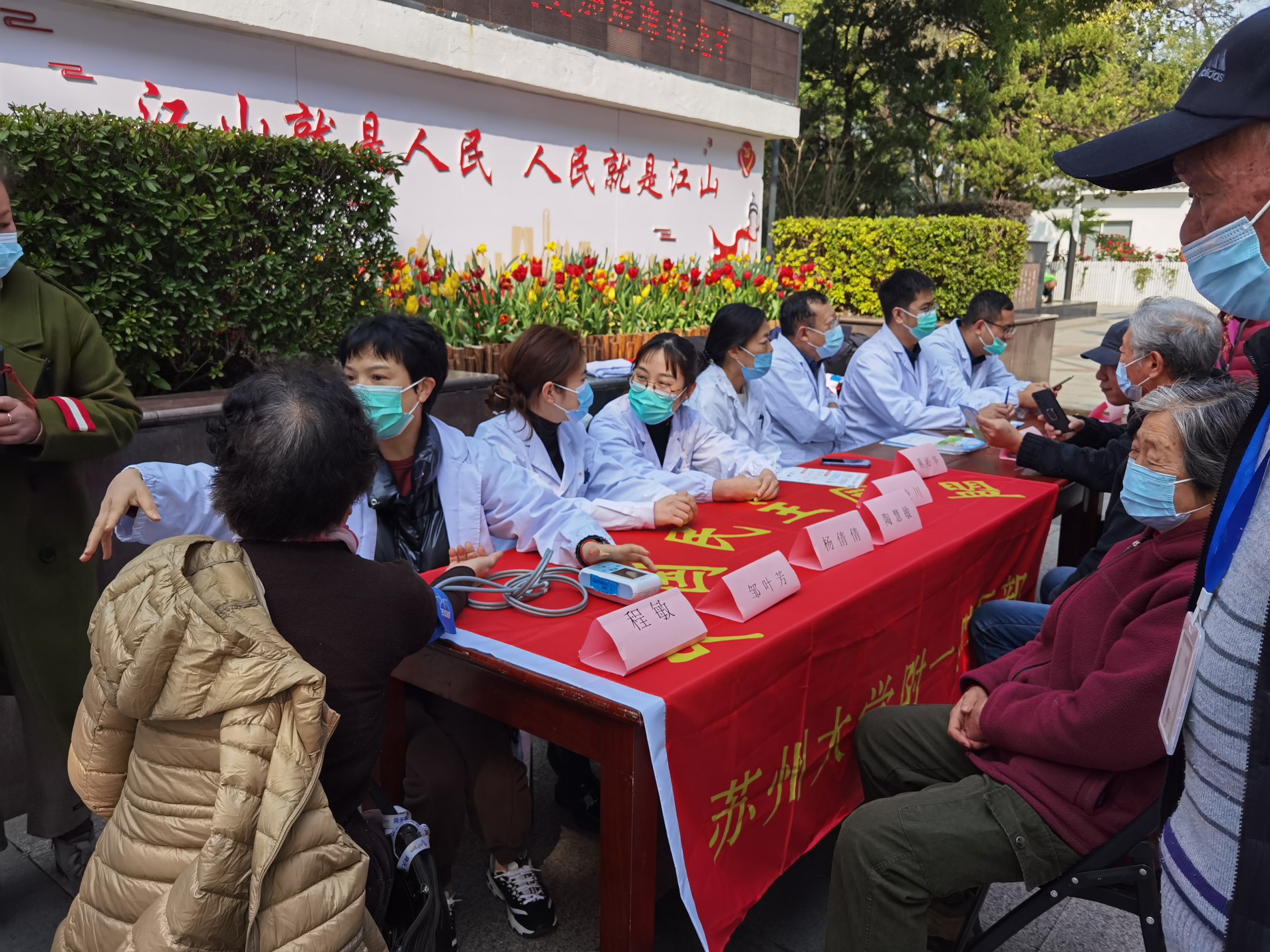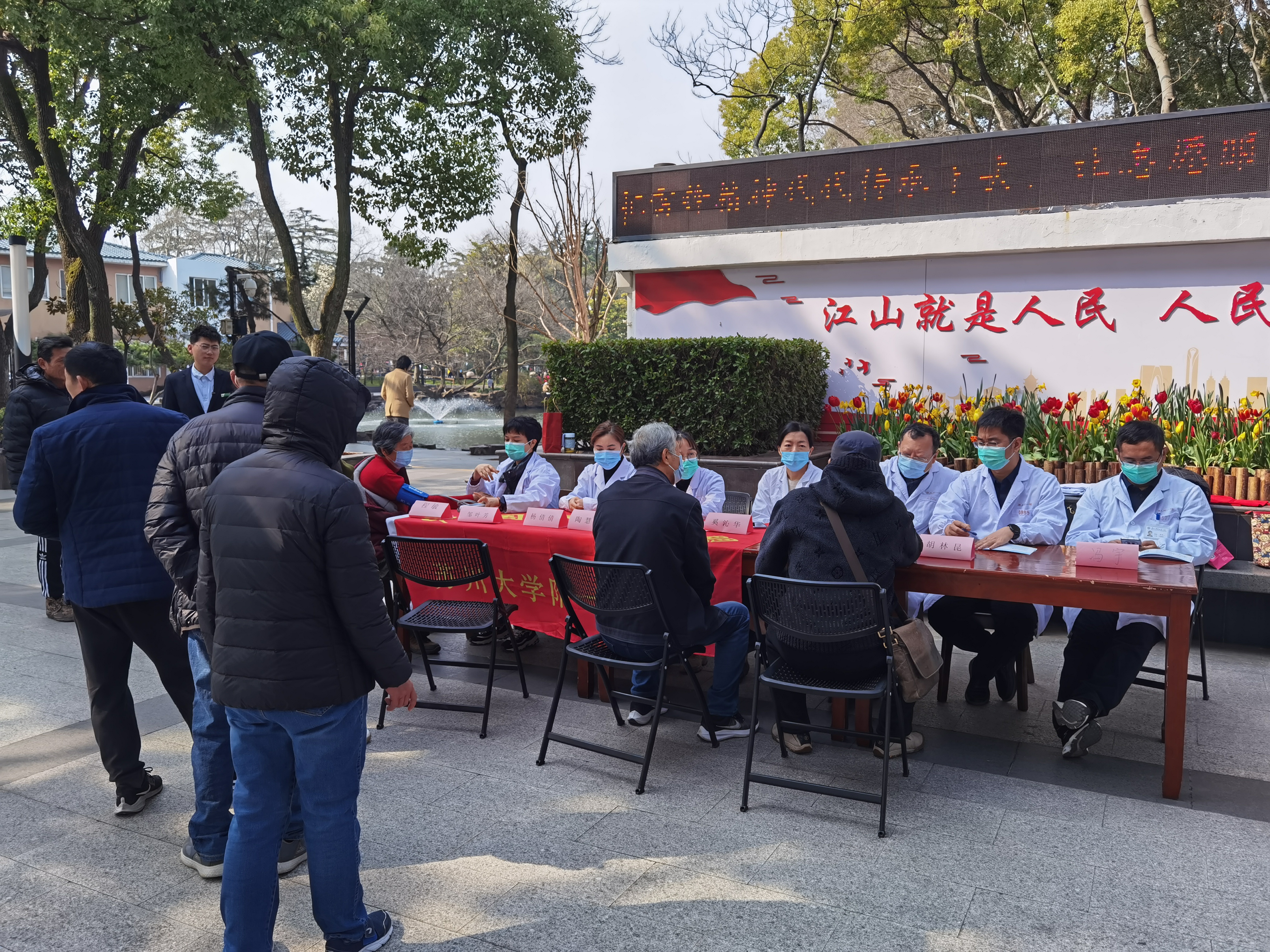 今年是毛泽东等老一辈革命家为雷锋同志题词60周年。为了传承雷锋精神、提振“四敢”精气神,近日,民盟苏大附一院支部主委郭凌川带领支部8位盟员,在苏州公园开展义诊送健康活动,以自身行动切实服务人民健康。