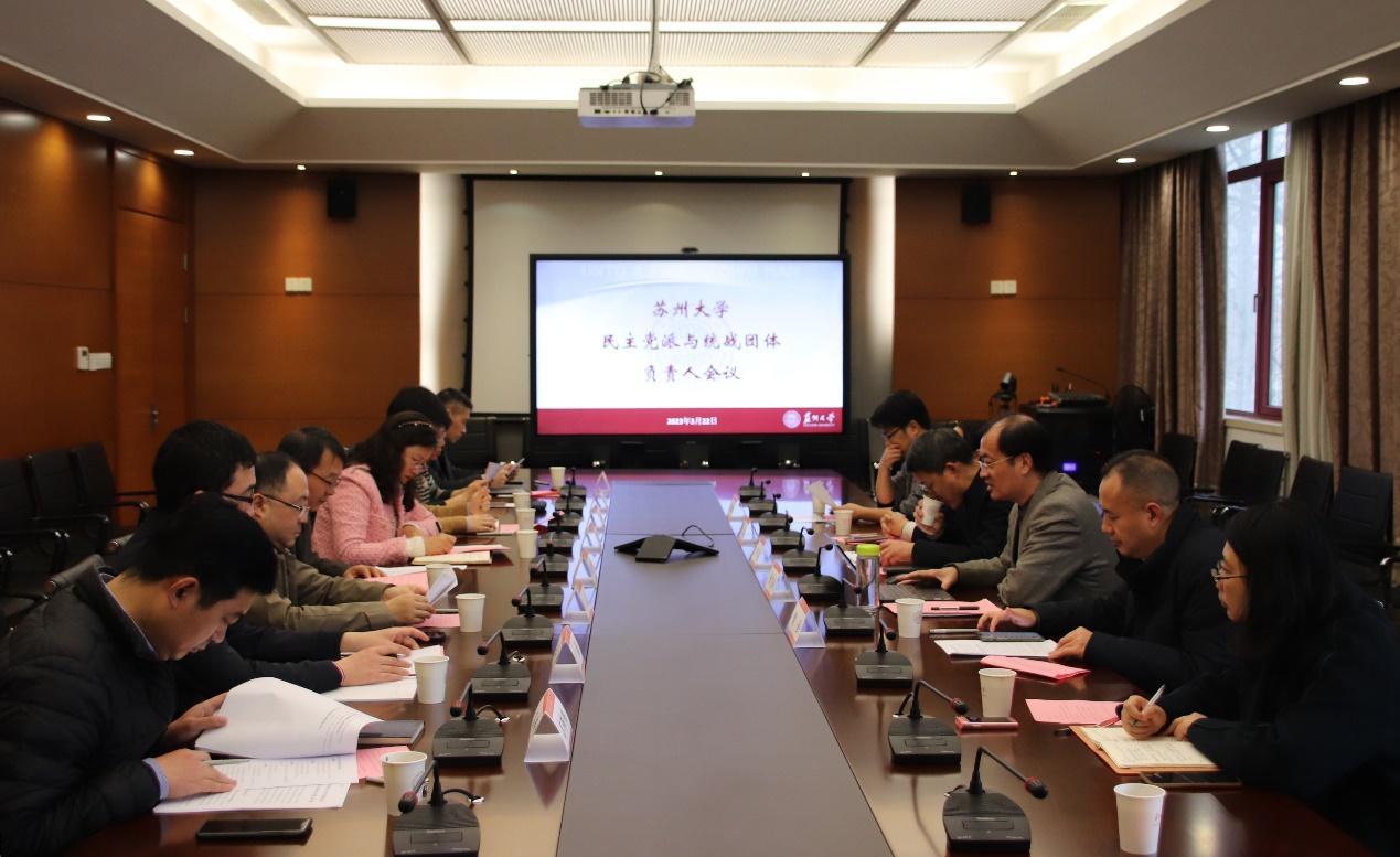 3月22日上午,我校民主党派和统战团体负责人会议在天赐庄校区举行。校党委副书记邓敏,民革、民盟、民建、民进、农工党、致公党、九三学社等七个民主党派苏大委员会负责人和校侨联、台联、欧美同学会(留学人员联谊会)、知联会等四个统战团体负责人参加会议。会议由校党委常委、党委统战部部长黄志斌主持。