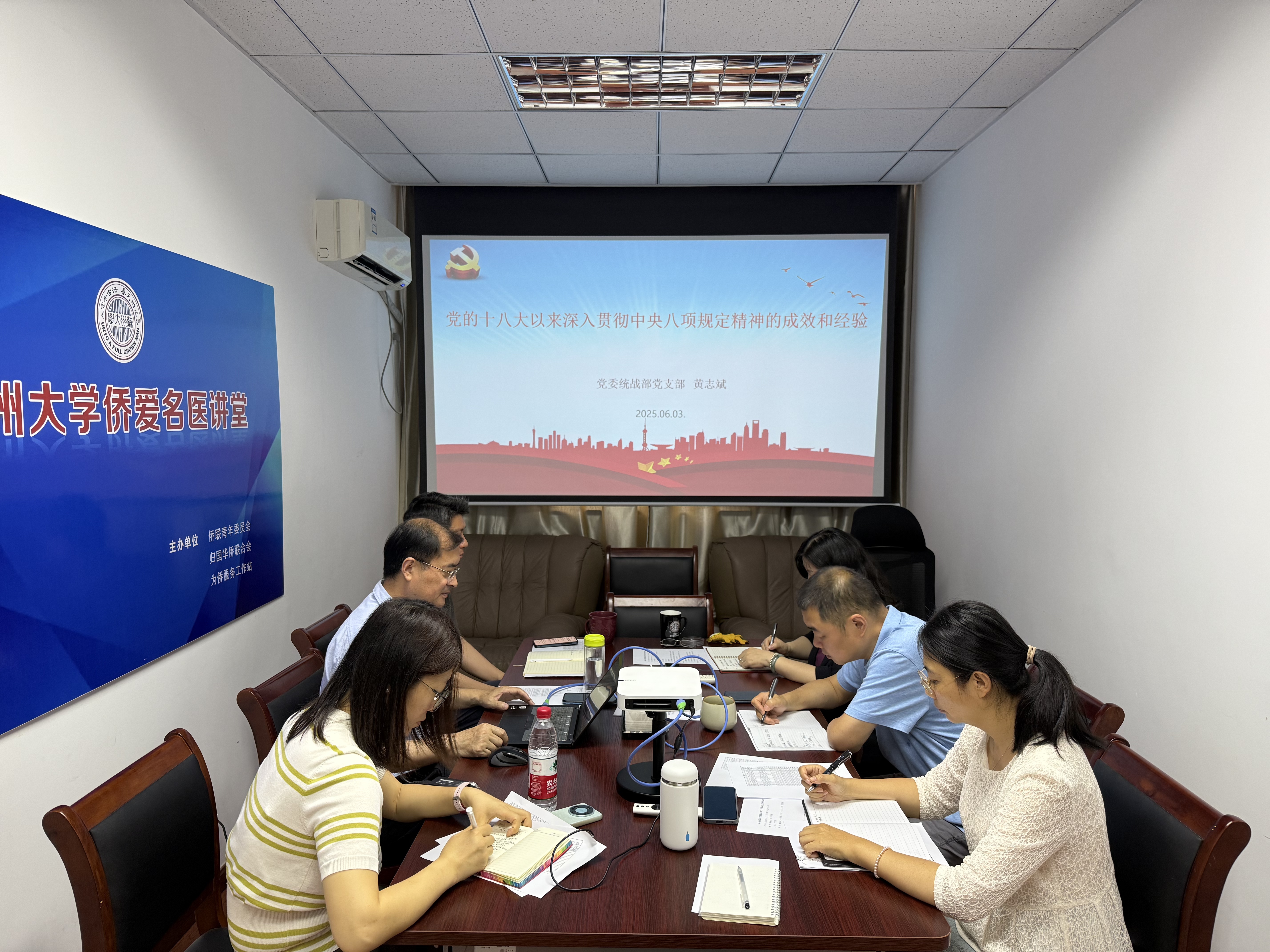 6月3日,党委统战部党支部开展深入贯彻中央八项规定精神学习教育专题党课。校党委常委、党委统战部部长、党支部书记黄志斌以《党的十八大以来深入贯彻中央八项规定精神的成效和经验》和《八项规定改变中国》为题讲授专题党课。