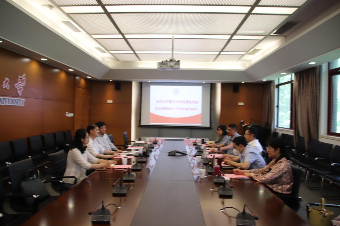 6月8日上午,南京大学党委统战部常务副部长王洪涛一行来我校调研交流统战工作。校党委常委、统战部部长黄志斌,党委统战部副部长叶明昌及有关工作人员参加调研。调研交流会由黄志斌主持。