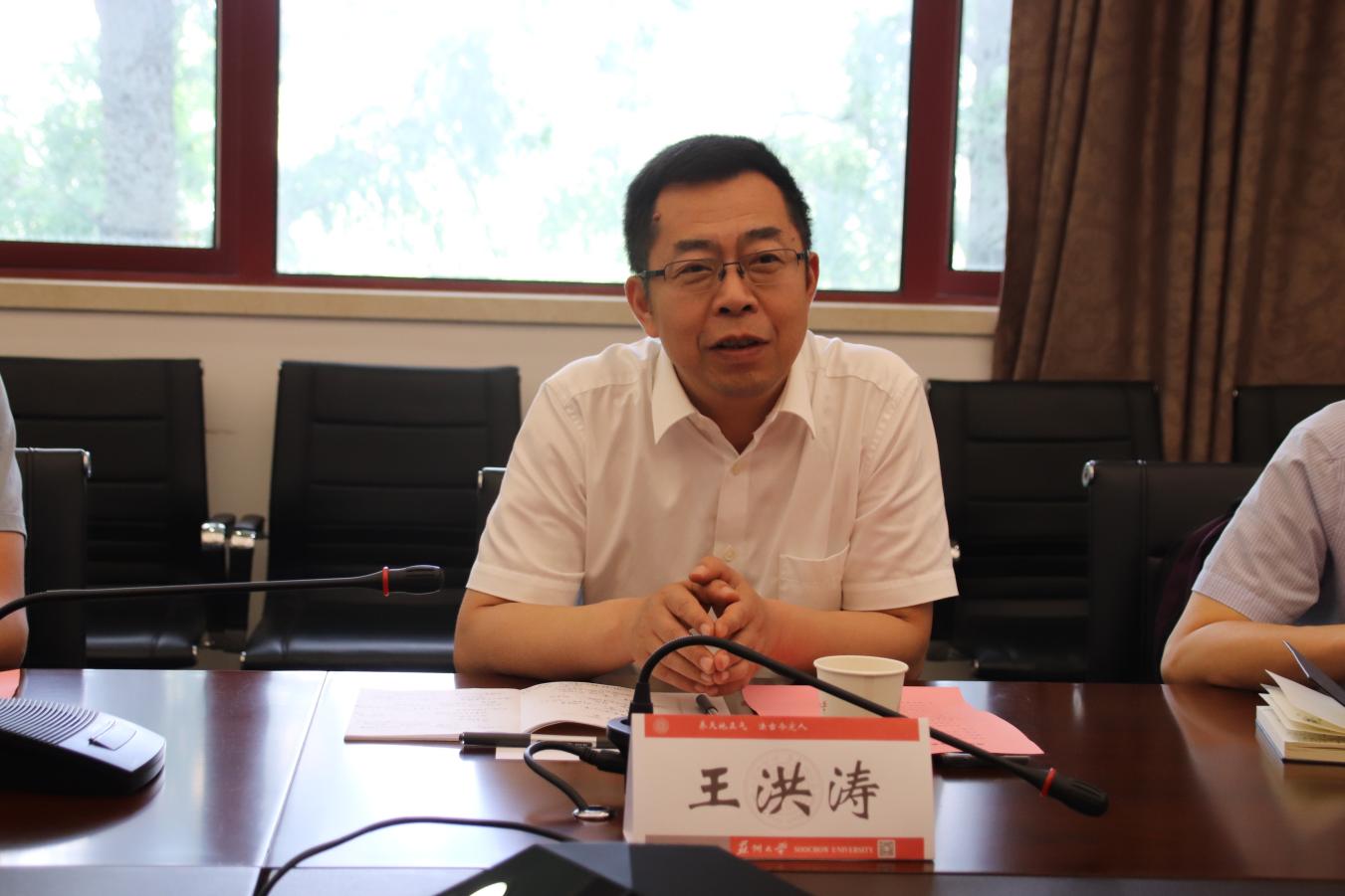王洪涛对我校统战工作的特色创新做法给予充分肯定。他从领导机制、考核激励、党派团体工作特色与品牌建设、侨务及留学归国人员工作、民族宗教工作、党外人士教育培训、参政议政及社会主义学院作用发挥等方面介绍了南京大学统战工作的开展情况。他表示,希望通过此次来访学习苏州大学统战工作的特色经验,引领动员统战成员围绕学校高质量发展贡献智慧和力量。