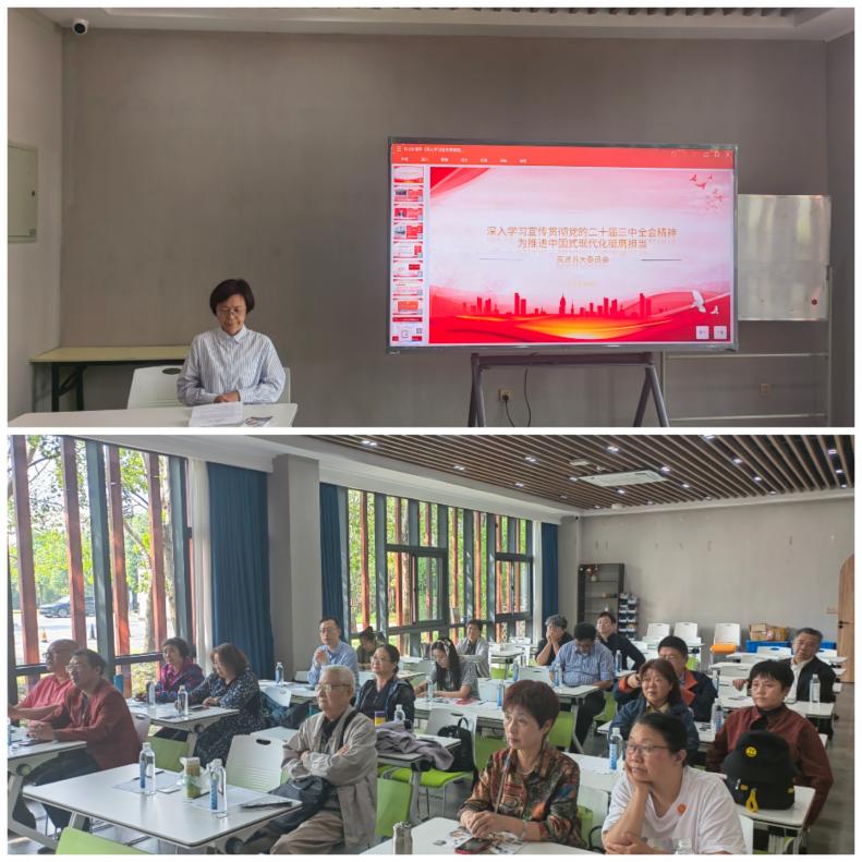10月8日,在重阳佳节来临之际,民进苏大委员会在吴江区大龙荡召开学习中共二十届三中全会精神会议曁重阳节考察活动。民进苏大委员会副主委孙茂民、吴玲芳,本部支部主委吴钰,独墅湖校区二支部主委陈铮,副秘书长郭恒杰与民进苏大基层委员会20多位会员参加会议。