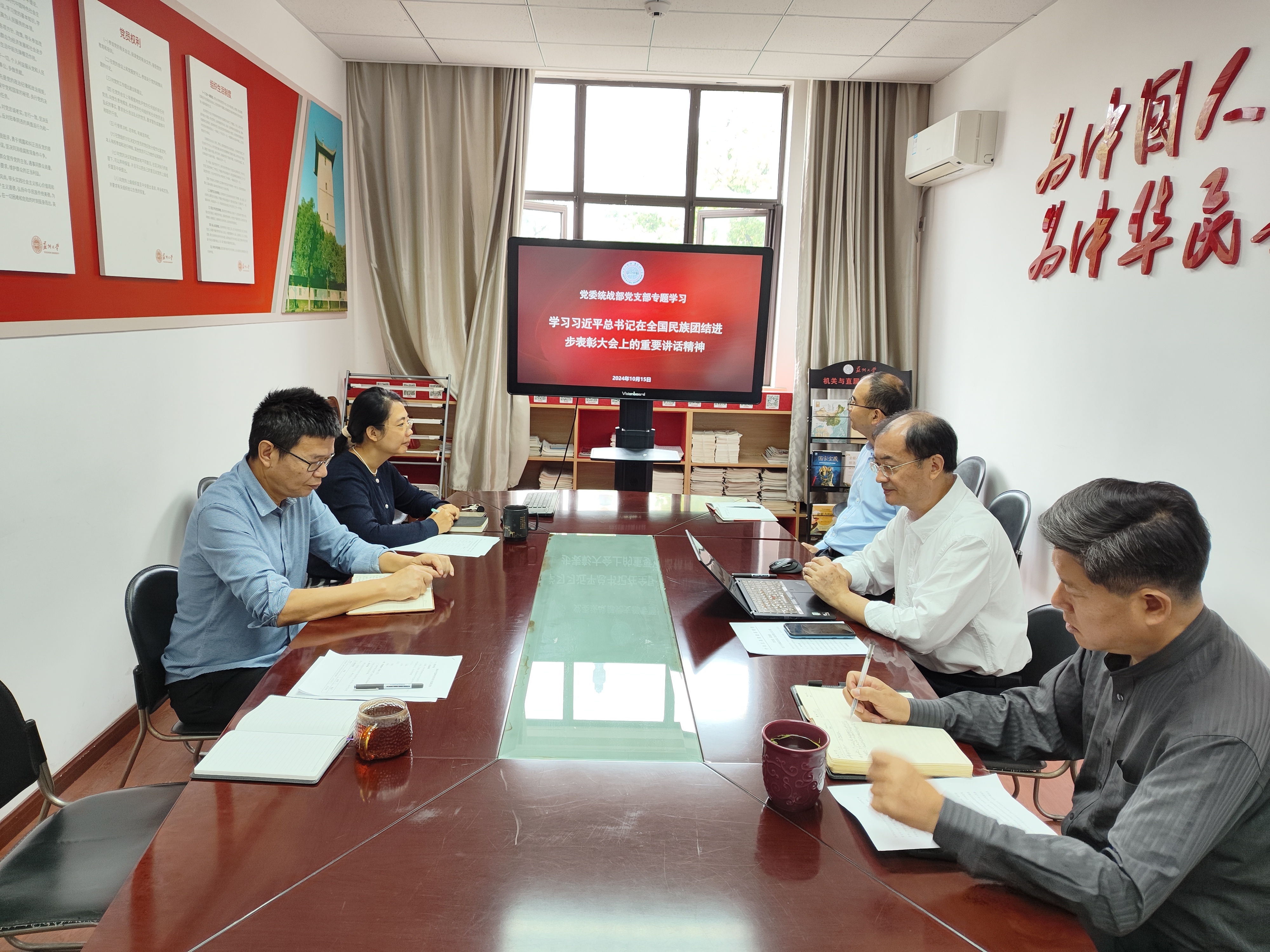 10月15日上午,党委统战部党支部开展主题党日活动,专题学习了习近平总书记在全国民族团结进步表彰大会上的重要讲话精神。主题党日活动由校党委常委、统战部部长黄志斌主持。