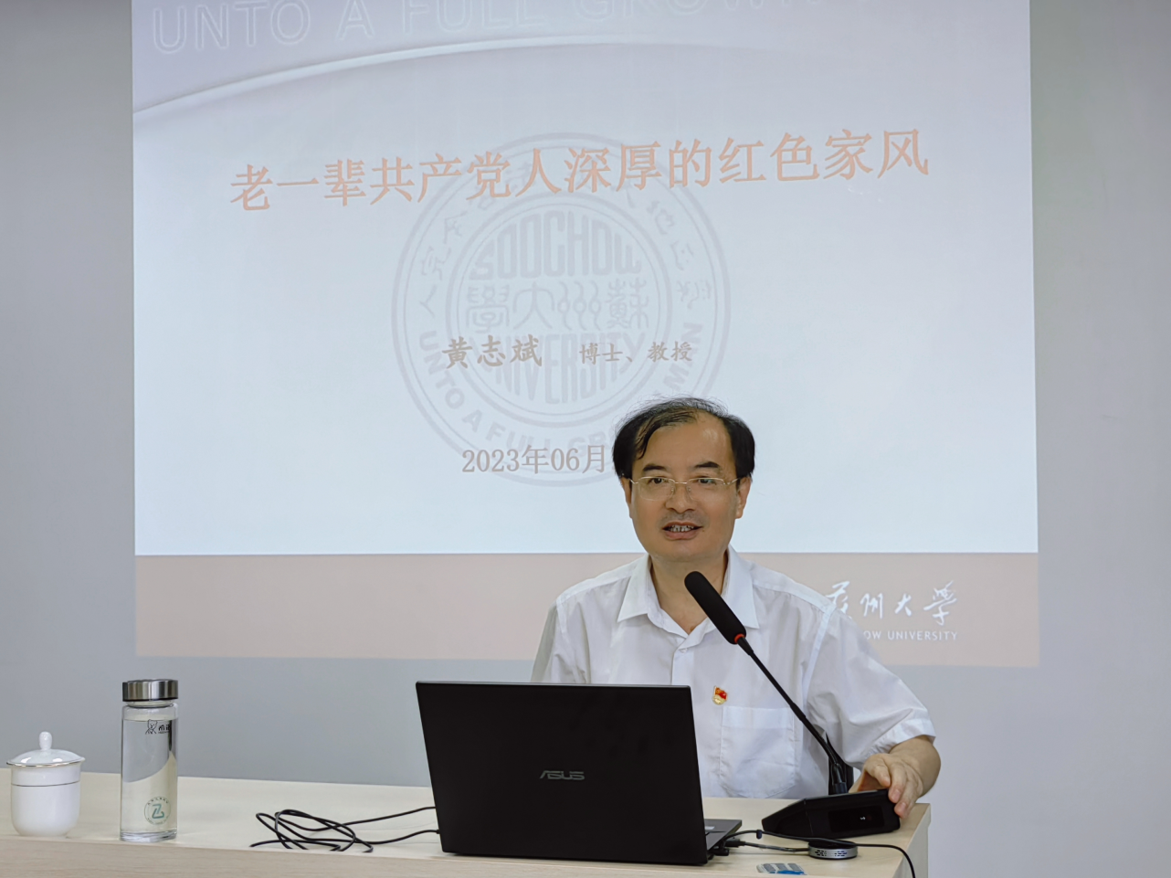 最后,黄志斌为党员们上了一堂廉政教育主题党课。他以《老一辈共产党人的红色家风》为题,详细讲述了毛泽东、周恩来、习仲勋等老一辈共产党员的红色家风故事,尤其以周恩来家教家风家庭家规家训中的“清、正、和”、“六不准”、“十条家规”等标杆式廉洁红色家风,向党员们传递了中国共产党人立党为公、执政为民的初心和使命,同时以正反两方面丰富的案例警示教育党员们要学习传承老一辈共产党员的红色家风,建设和弘扬新时代良好家风,以优良家风涵养清正党风政风。