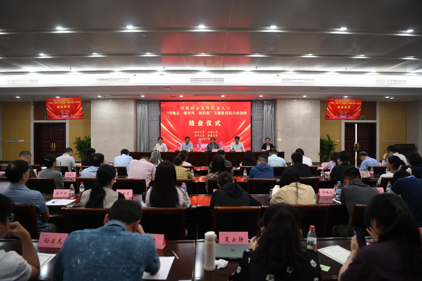 焦瑞华在结业式中指出,开展主题教育的根本目的在于以学促干,将理论成果转化为工作指南,把优良作风化为实干动力。作为党和国家人才队伍的重要组成部分,高校党外代表人士一要提高政治站位,提升政治思想新高度;二要自觉以身作则,以学正风,勇担责任使命,塑造作风建设新面貌;三要立足本职岗位,创造干事创业新成就,为推动高校立德树人、服务社会创造新的时代业绩;四要着力作用发挥,做出建言献策新贡献,在建设教育强国、科技强国、人才强国中积极贡献“金点子”,成为双岗建功的先进典范。她希望四校以此次培训为契机,深化友谊、凝聚共识,不断续写团结奋进的新篇章。