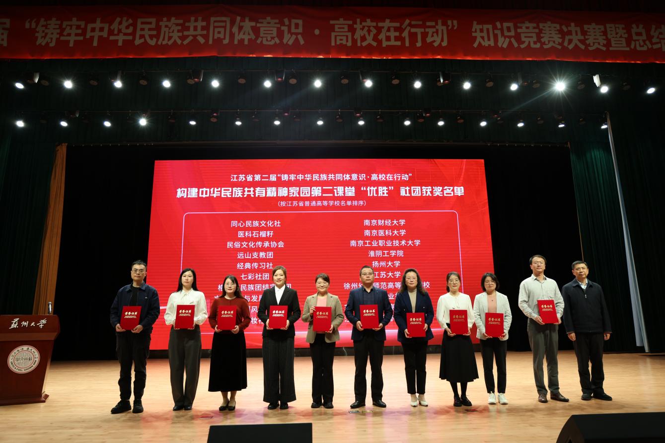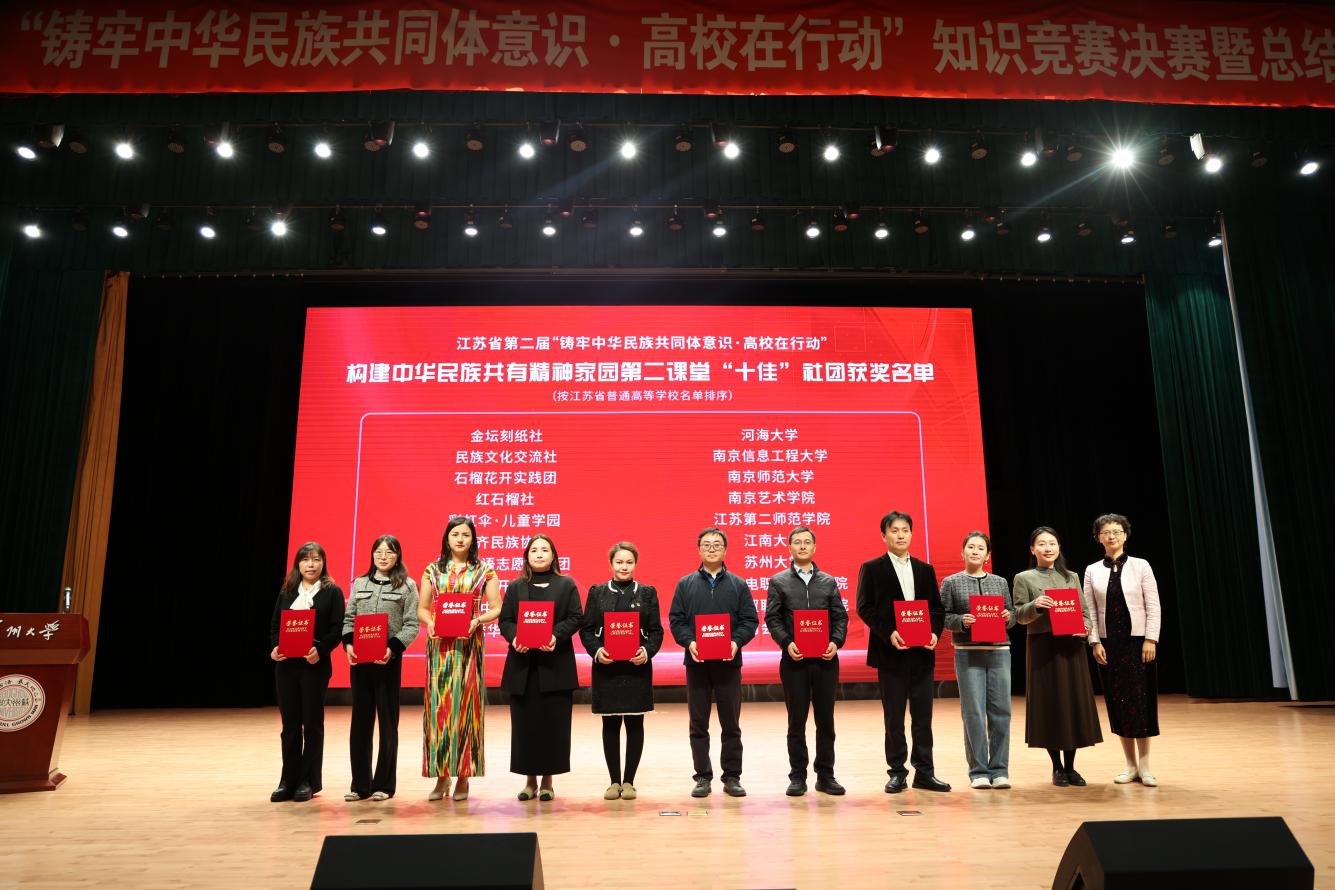 为加强高校铸牢中华民族共同体意识教育,由省民族宗教事务委员会、省委宣传部、省委统一战线工作部、省教育厅共同主办,我校承办的江苏省第二届“铸牢中华民族共同体意识·高校在行动”系列活动于今年4月底正式启动。活动期间,全省164所高校的165万余名师生参与其中。各高校紧密围绕“铸牢中国心 凝聚奋进力”的活动主题,以美润心举办“品鉴高雅艺术,弘扬民族文化”民族艺术展演,以赛促学参与铸牢中华民族共同体意识知识竞赛,以文化人传承中华民族优秀传统技艺,以行践知构筑中华民族共有精神家园第二课堂,以理启智开展铸牢中华民族共同体意识学术沙龙和宣讲团进高校活动,充分展示了各民族师生像石榴籽一样紧紧抱在一起,共同建设伟大祖国、共同创造美好生活的精神风貌。