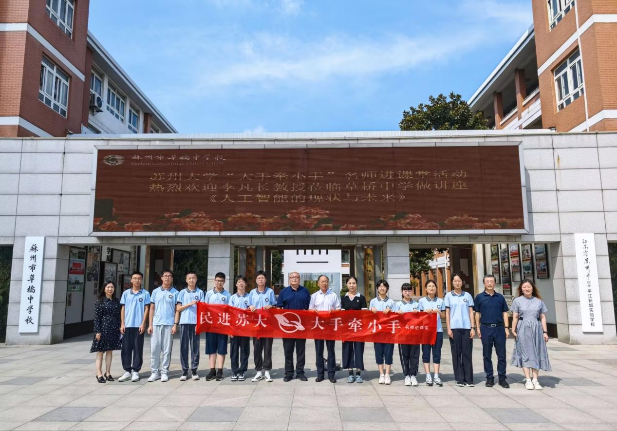 新学期伊始,为贯彻落实国务院《关于深入实施“人工智能+”行动的意见》文件精神,民进苏大委员会“大手牵小手 名师进课堂”活动第六站在苏州市草桥中学校举办。民进会员、江苏省机器学习与网络安全交叉研究工程中心主任、苏州大学教授李凡长为初三年级全体学生带来了一场关于“人工智能的现状与未来”的精彩讲座。民进苏大基层委员会秘书长赵石言、本部支部主委吴钰参加活动。