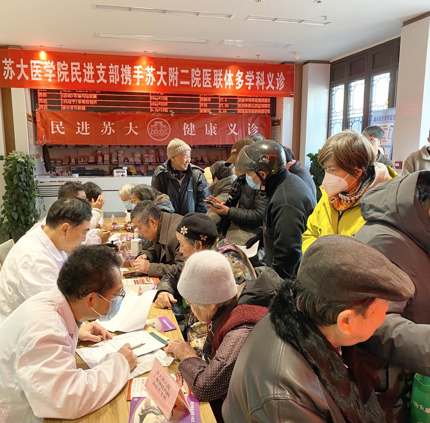 12月14日,为践行党的二十大和二十届三中全会精神,推动优质医疗资源下沉,服务群众办实事,民进苏大附二院支部联合民进苏大医院总支以及医联体桃花坞社区成功举办了多学科义诊活动,将冬日里的温暖、关怀与健康传递给基层群众。苏大基层委员会副主委、医院总支主委蒋廷波、苏大基层委员会委员周毅彬,附二院支部主委金涛,附儿院支部主委汤继宏、附一院支部副主委冯雪梅,以及苏大附二院支部和附一院支部的民进会员们参与义诊。
