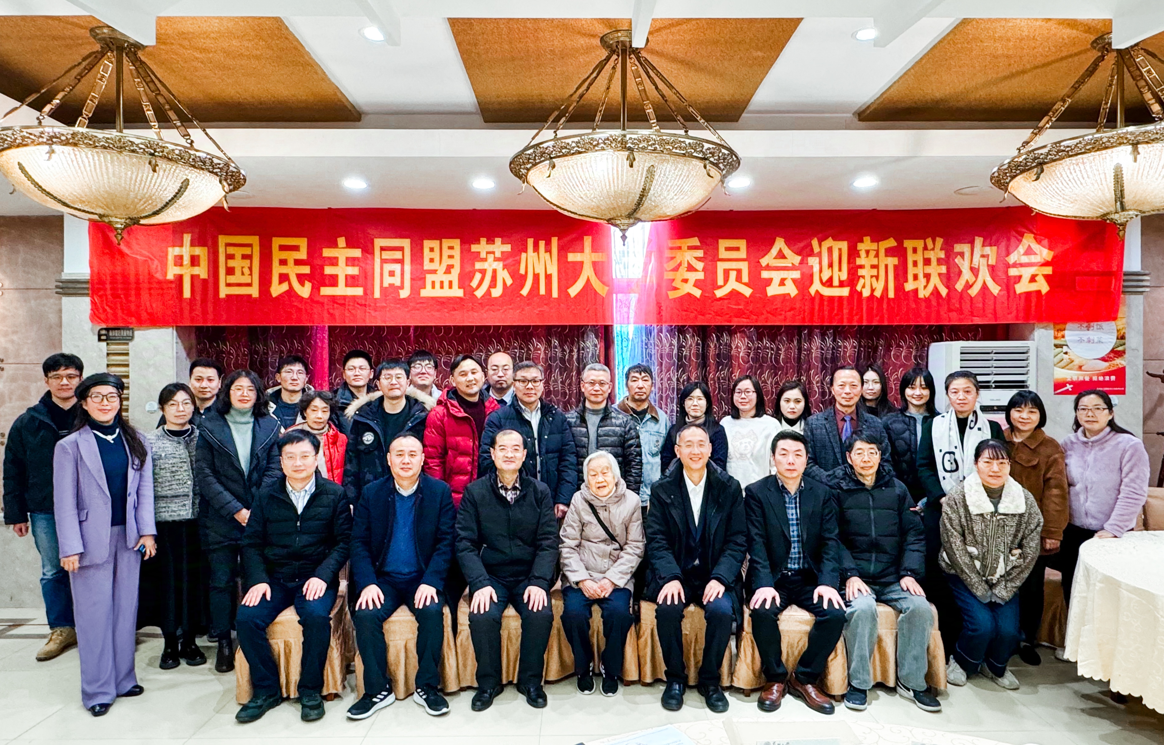 12月31日,民盟苏州大学委员会在东吴饭店举办了2025年迎新联欢会。苏州大学党委常委、统战部部长黄志斌,民盟苏州市委会专职副主委承创,民盟苏州市委会副主委、民盟苏州大学委员会主委陶金与30余位盟员共聚一堂、共庆新春。活动由民盟苏州大学委员会副主委兼秘书长郭凌川主持。