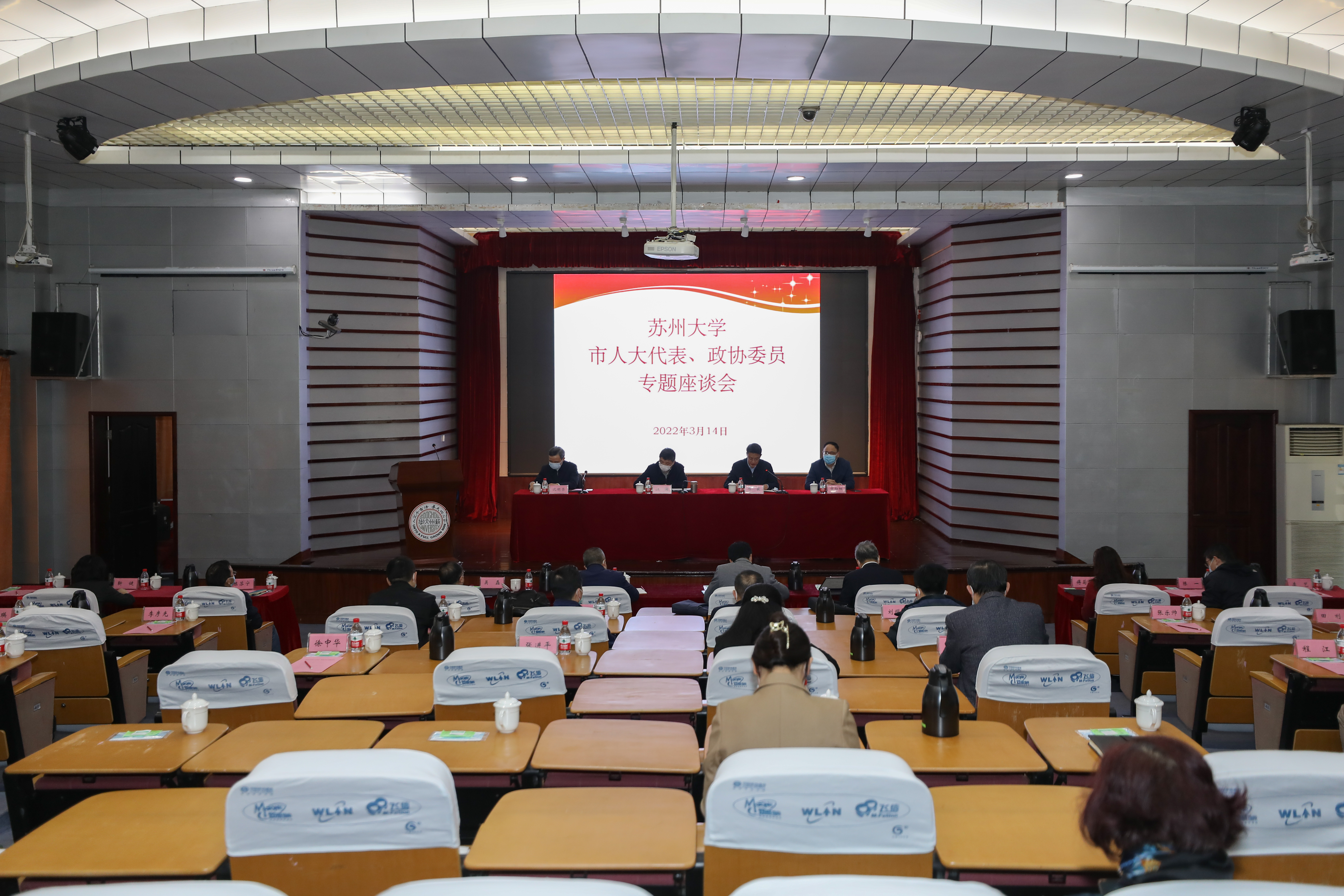 为进一步发挥我校市人大代表、政协委员应有作用,在即将召开的苏州市两会上履职尽责,反映社情民意,3月14日,苏州大学市人大代表、政协委员专题座谈会在天赐庄校区红楼学术报告厅召开。校党委书记江涌,党委常委、副校长沈明荣,校党委常委、纪委书记、派驻监察专员宫向阳,党委组织部、党委统战部负责人,苏州大学新一届市人大代表、政协委员等出席会议,会议由党委副书记邓敏主持。