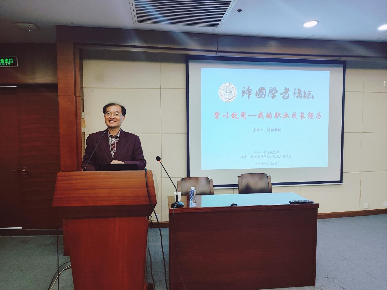 11月22日下午,我校“归国学者讲坛”在阳澄湖校区举办。苏州大学机电工程学院博士生导师、九三学社社员陈琛教授作为特邀嘉宾主讲本次报告会。校党委统战部、机电工程学院、沙钢钢铁学院、轨道交通学院以及校欧美同学会(留学人员联谊会)相关领导和人员出席报告会。报告会由校党委常委、统战部部长黄志斌主持。