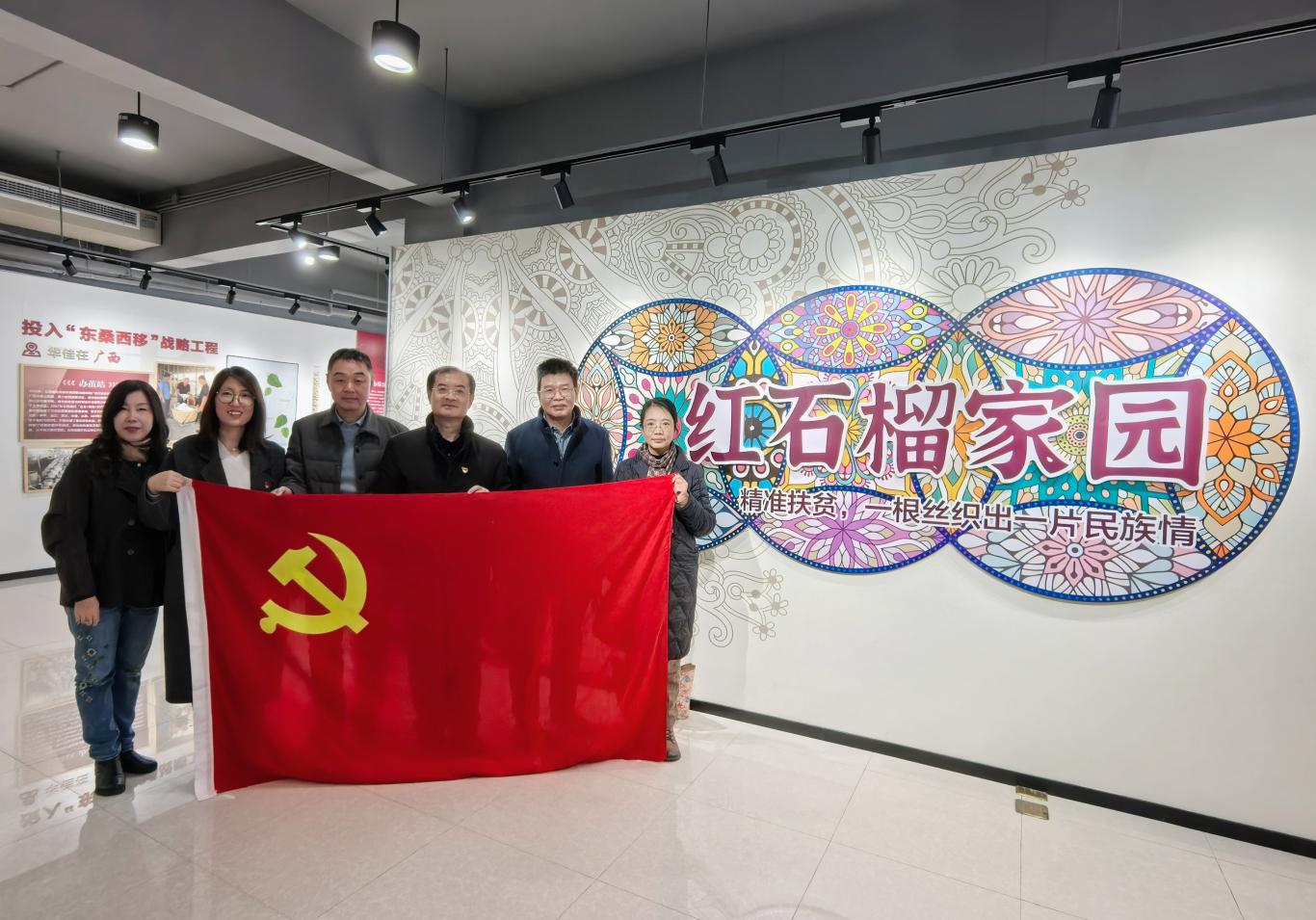 党员一行先后参观了华佳企业展厅和“红石榴家园”展厅,认真聆听企业负责人讲解发展历程与民族工作实践成果。华佳集团深耕丝绸产业五十多年,积极响应国家“东桑西移”战略,扎根广西、云南等少数民族聚居区布局蚕桑产业链,以“订单式农业” 模式,带动当地数万壮族、瑶族、苗族、彝族等少数民族群众增收致富,让小小蚕桑成为联结东西部、促进各民族交往交流交融的致富纽带,用实干诠释了“中华民族一家亲”的深刻内涵。