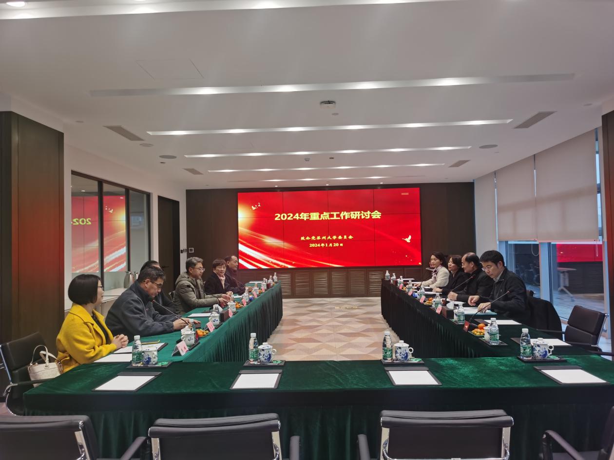 1月20日,致公党苏州大学委员会在江苏永鼎股份有限公司总部大楼会议室召开了“同心同德 向实而行”2024年重点工作研讨会。苏州大学党委常委、统战部部长黄志斌,致公党苏州市委会秘书长曹洁出席会议。致公党苏州大学委员会全体委员及各支部主委参加了本次会议。会议由致公党苏州大学主委沈纲祥主持。