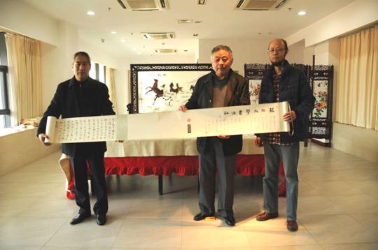 捐赠活动结束后,来宾们还兴致勃勃地参观了博物馆,尤其在历代名家书画展品前,他们揣摩切磋,不亦乐乎。