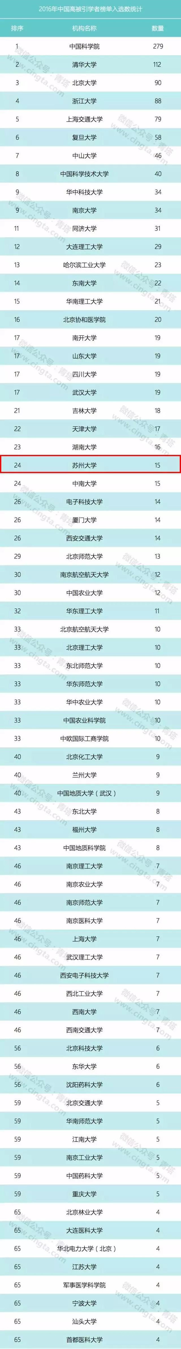 近日,世界著名出版公司爱思唯尔发布了2016年中国高被引学者(Most Cited Chinese Researchers)榜单,中国内地38个学科的1776名最具世界影响力的中国学者入选其中。苏州大学李述汤院士等15位学者进入榜单,入榜学者总数位列全国高校第24名。主要涉及材料科学,化学工程,计算机科学,生化、遗传和分子生物学,数学,物理学和天文学,医学等七个学术领域。一起来看看我校本次上榜的学者名单(排名不分先后)。