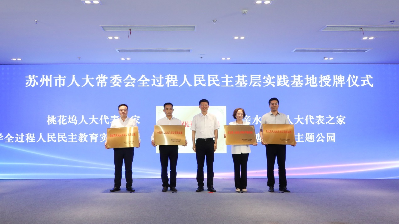 我校作为此次接受授牌的4家单位之一,是苏州市授牌建设的首批“全过程人民民主基层实践基地”,也是唯一一所入列高校单位。