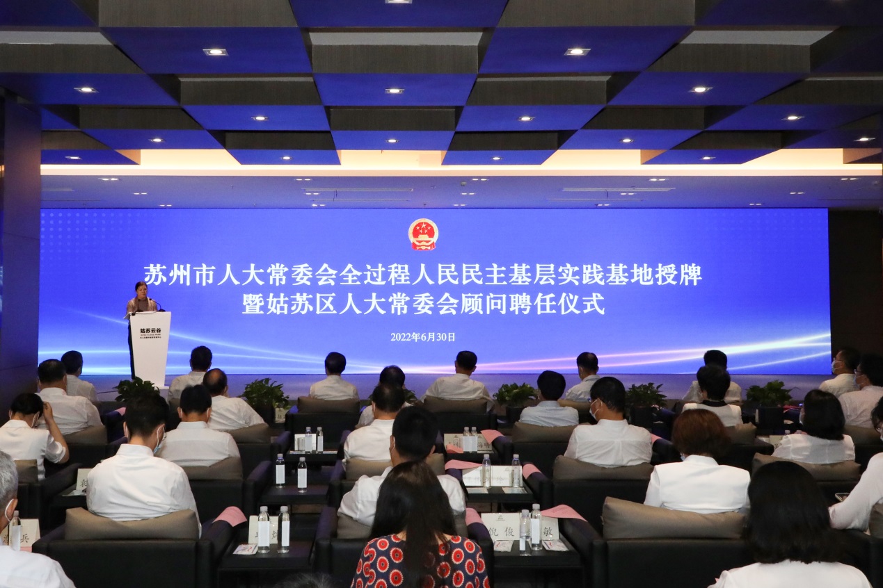 6月30日,苏州市人大常委会举行首批“全过程人民民主基层实践基地”授牌仪式,正式在全市启动了“全过程人民民主”基层实践基地建设。省十二届人大常委会秘书长吕振霖、市人大常委会主任李亚平、市委常委姑苏区委书记方文浜出席授牌仪式并讲话。我校党委常委、副校长、统战部副部长(主持工作)李孝峰出席会议。