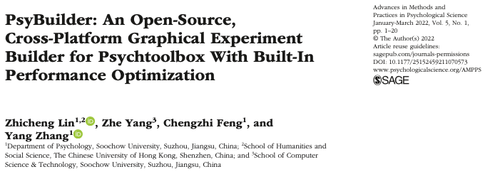 目前,PsyBuilder实验编程软件系统研究成果以题为“PsyBuilder: an Open-Source Cross-Platform Graphical Experiment Builder for Psychtoolbox with Built-in Performance Optimization”在国际心理学领域方法学顶级期刊Advances in Methods and Practices in psychological Science发表(美国心理科学协会会刊,5年影响因子19.3,SSCI期刊前1%),成为该期刊创刊以来首篇通讯单位来自国内科研机构的论文。