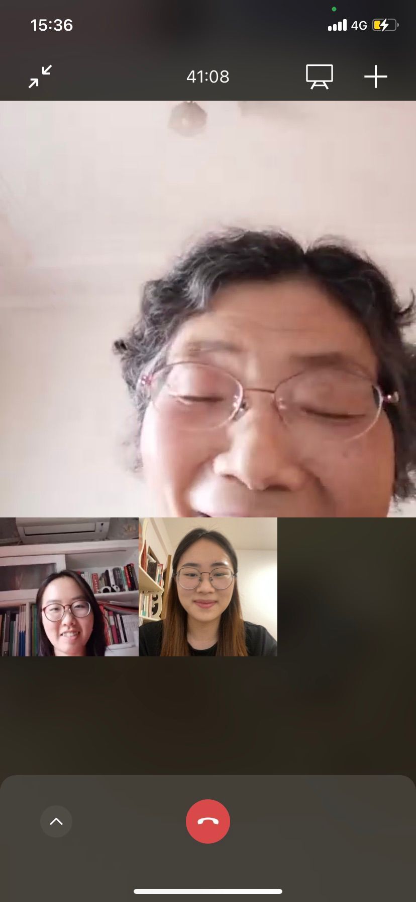 翟文星、赵媛媛、黄珏楠三位同学在不能亲自登门拜访老人的前提下,想办法联系了邱爷爷的夫人,在4月16日上午与老人进行了充满温情的视频通话。志愿者询问了老人近期的身体状况和苏州的疫情形势,爷爷奶奶不仅与志愿者分享了他们当前的生活情况,包括小区实施封控管理、全员常态化做核酸等,还叮嘱志愿者要注意防护、加强锻炼、劳逸结合。最后,志愿者承诺每个月与老人电话聊天,关注老人的生活动向,但愿在他们有需求时伸以援手。