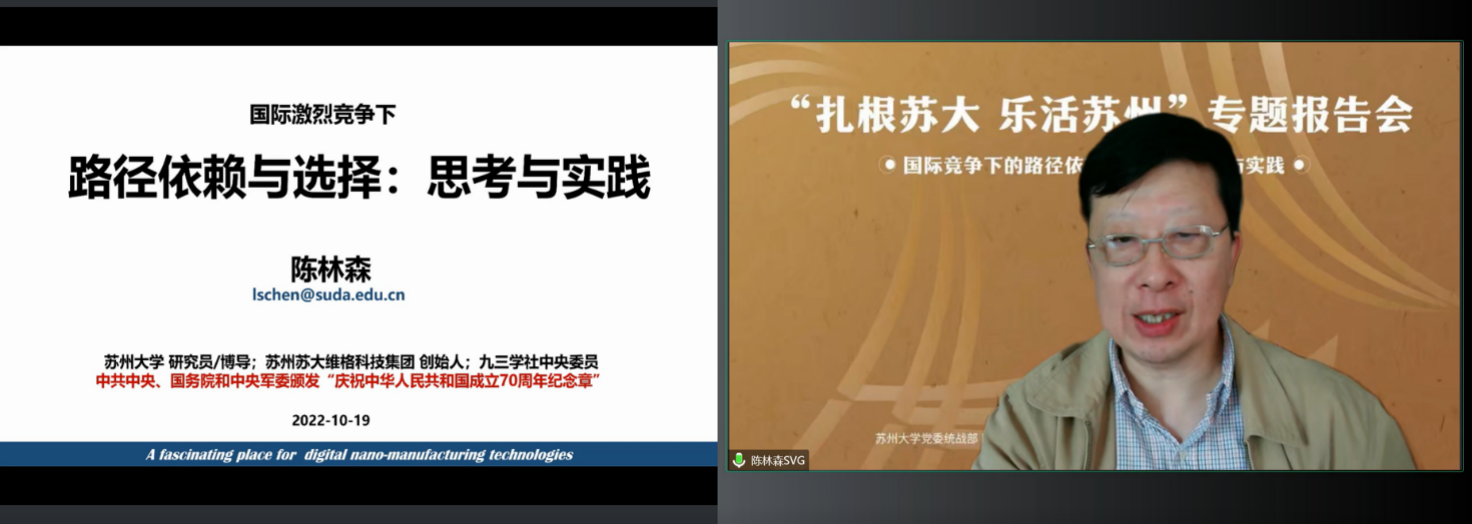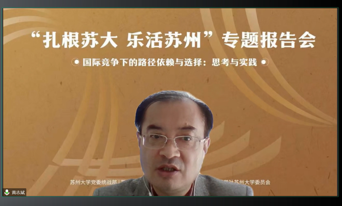为深入学习党的二十大精神,进一步激发青年海归学者的创新创业热情,发挥青年海归人才在学校发展中的重要支撑作用,10月19日下午,苏州大学党委统战部、校欧美同学会(留学人员联谊会)、九三学社苏州大学委员会以线上会议的方式举行了“扎根苏大 乐活苏州”专题报告会。