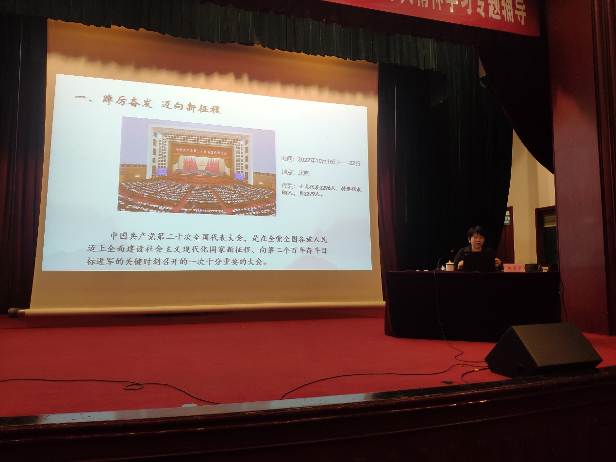 随后,培训班举办了首场培训。我校马克思主义学院副院长朱蓉蓉教授以《全面推进中华民族伟大复兴的政治宣言和行动纲领--深入学习领会党的二十大精神》为题,为全体学员做了党的二十大精神学习专题辅导报告,她从“踔厉奋发 迈向新征程”“勇毅前行 壁画新蓝图”“知行合一 争做‘大先生’”三个方面,结合丰富详实的资料和案例解读了党的二十大召开的重大意义和精神实质。