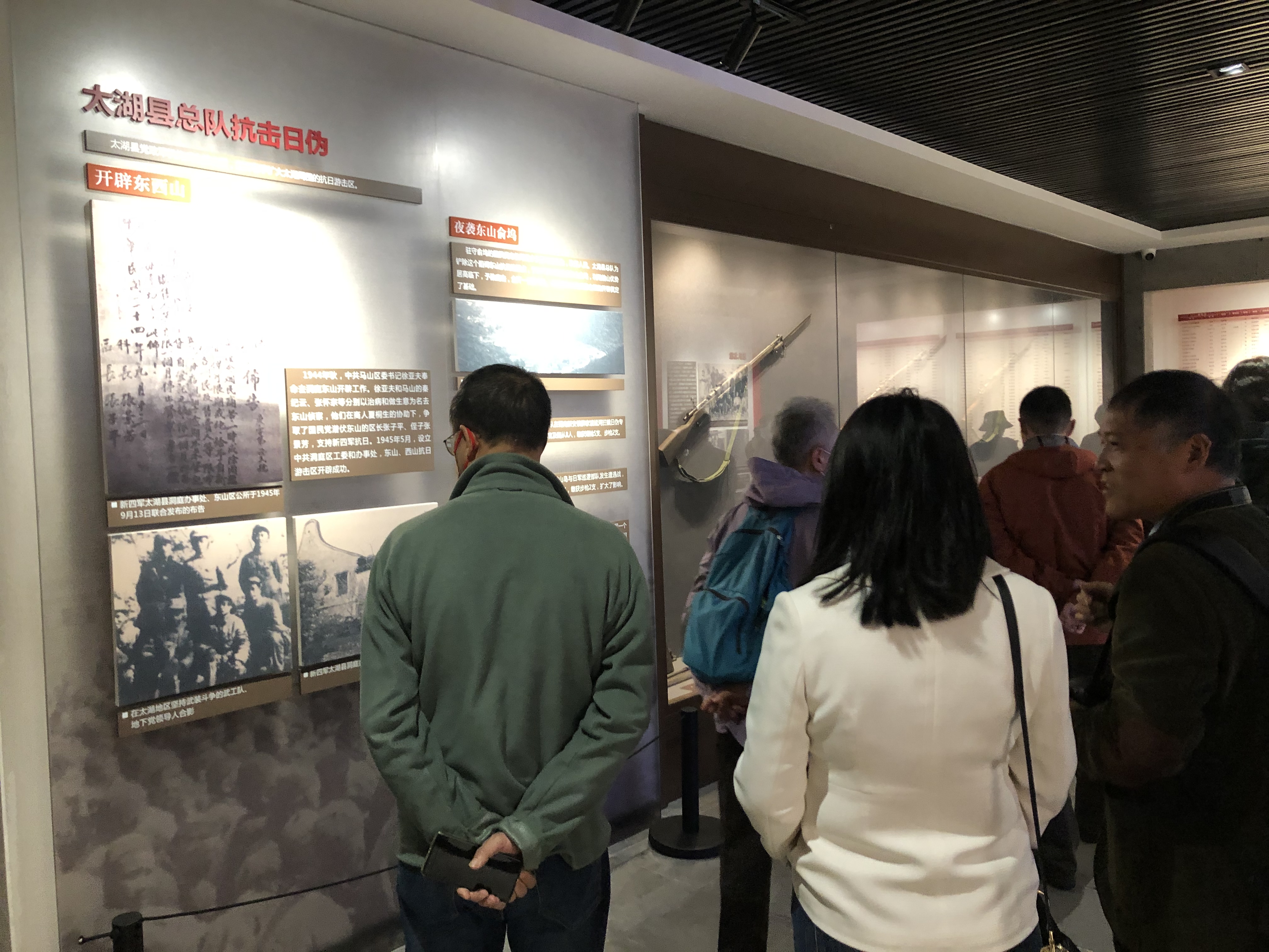 活动人员参观了纪念馆中陈列的游击队战士曾用过的生活用品、战斗武器和信件等,体验了抗战时期的芦苇荡、通信船、联络站等场景,系统学习了新四军太湖抗日游击支队初建、重建、扩建时期的曲折历程,深刻感受了太湖游击队的战斗历程和英雄风貌。