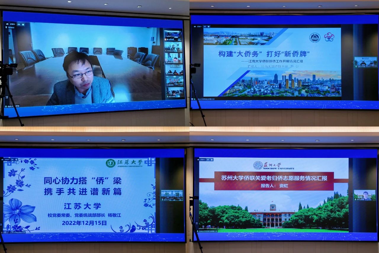 为贯彻落实党的二十大和全国高校侨联建设工作经验交流会精神,推动我省高校侨联建设高质量发展,12月15日下午,省侨联、省教育厅联合召开全省高校侨联建设工作推进会。省侨联党组成员、副主席兼秘书长张霓、省教育厅二级巡视员张兆臣、省教育厅统战与群工处处长张晓宁,省侨联基层建设部部长魏羽升主持会议。我校党委统战部副部长叶明昌参加会议,校侨联副主席兼秘书长资虹围绕我校关爱老归侨志愿服务活动有关内容做了交流发言。